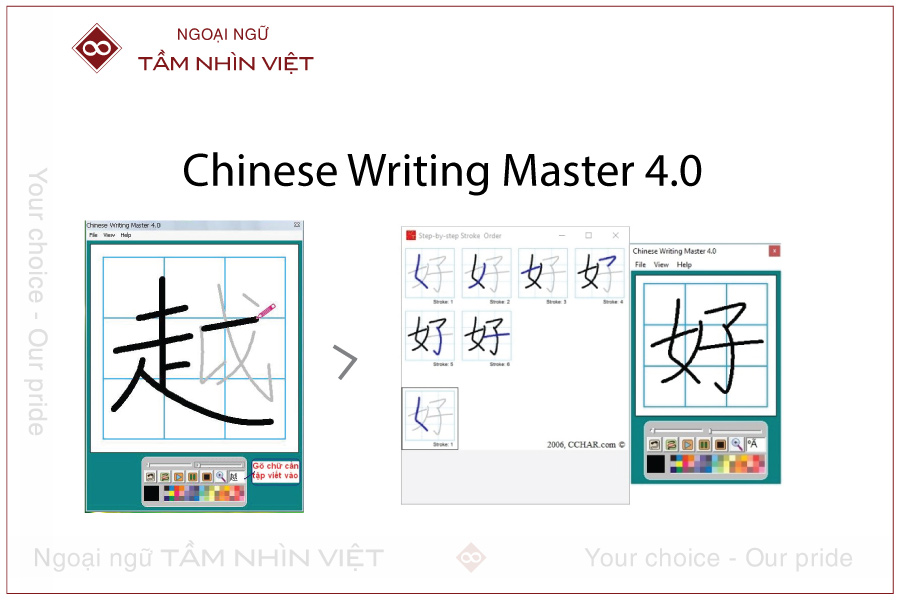 | Tính năng nổi bật | Hướng dẫn viết theo thứ tự nét chữ, hỗ trợ cả phồn thể và giản thể |